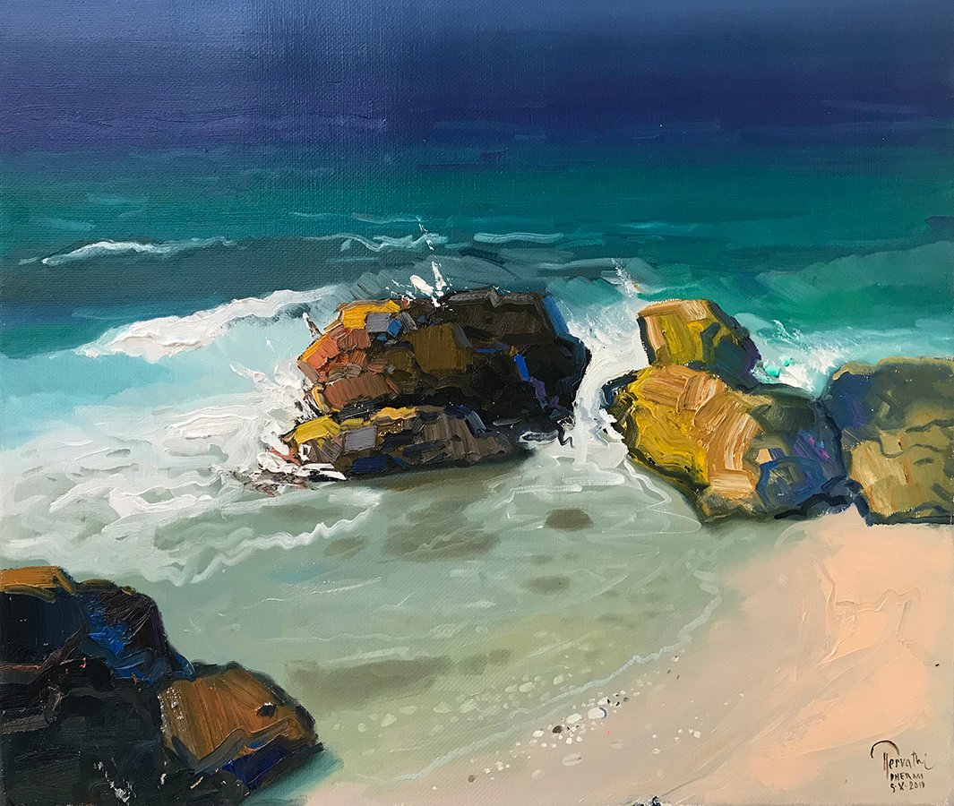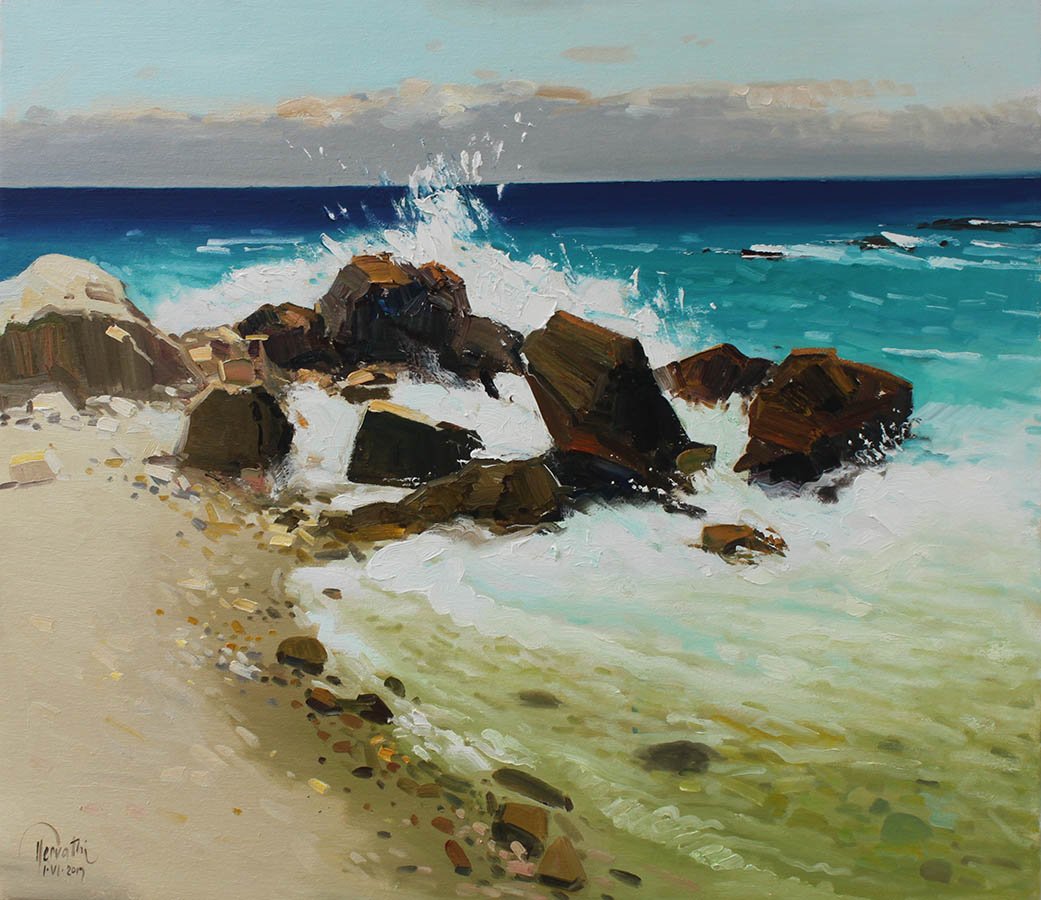 WAVES ON THE STONE, (100X80 cm)